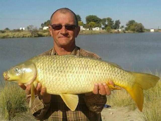 Frans from Delareyville with his catch at Bamboespruit. He used Duiwelsdrek maize pips and Banana flovourant on his feed.