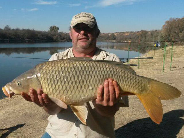Hein Henning with a Vaal River Carp caught at Lumana Resort on a cluster of Tigernuts flavoured with Pineapple.